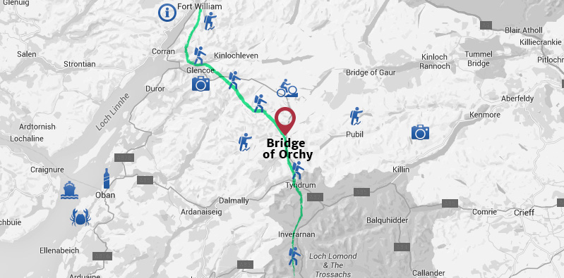 Overlooking the River Orchy in the shadow of Beinn Dorain on the A82, the hotel is a two hour drive from Glasgow, two and a half hours from Edinburgh and a one hour drive from Oban.